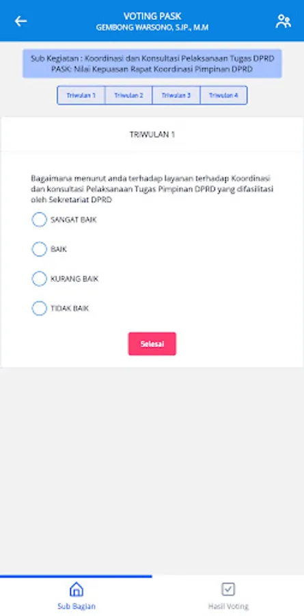 Members of the DKI Jakarta DPRD can vote through their respective sub-sections to get an index of satisfaction with an activity.
