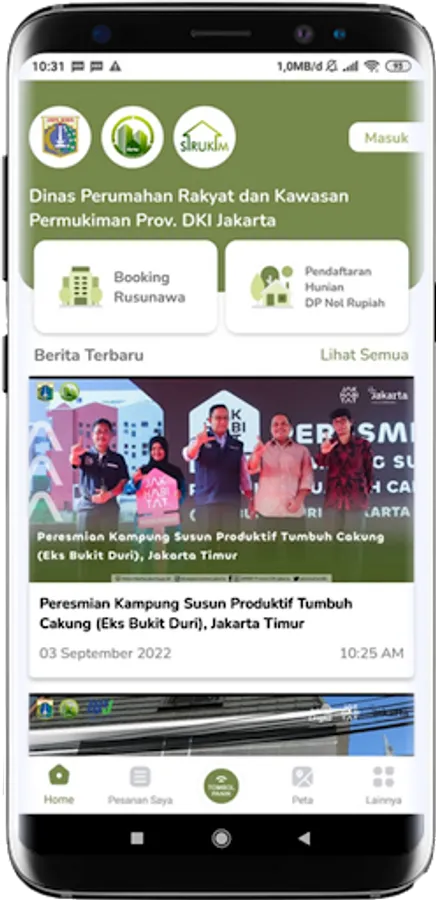 Through the application for the Housing and Settlement Information System (SIRUKIM) you can access official information about simple rental flats (rusunawa) for the DKI Jakarta Provincial Government and DP Zero Rupiah housing, as well as apply for online registration in the palm of your hand anytime and anywhere.