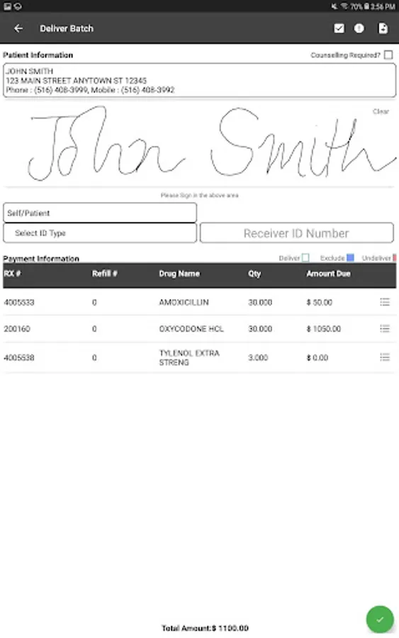 * Delivery mode: Signatures are captured at the time of delivery and the prescription is marked “Delivered.”