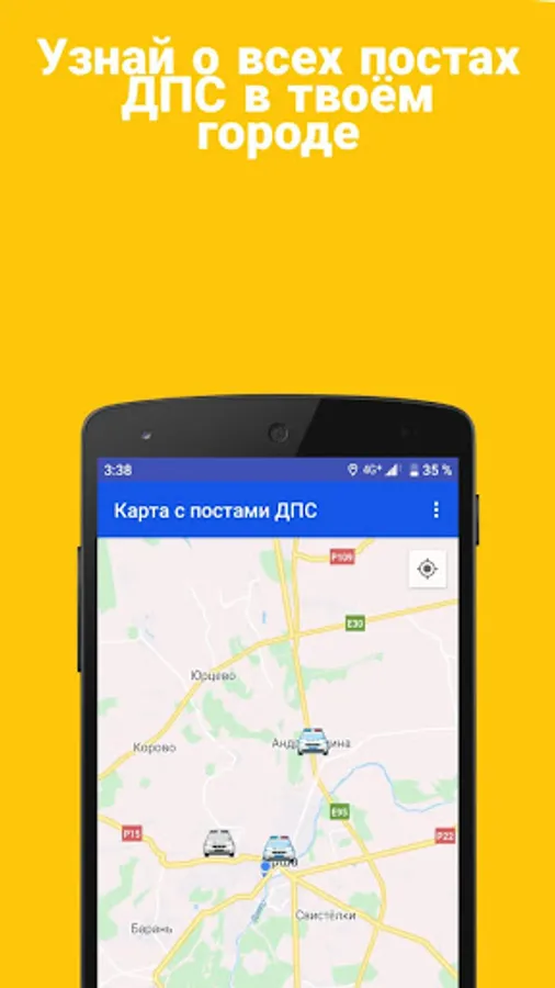 A user who has stumbled upon traffic police officers can mark this traffic police post on a map. The remaining users will only have to confirm or deny this information by clicking on the label of this DPS post. Using the information received from users, the application edits the mark of the traffic police post
