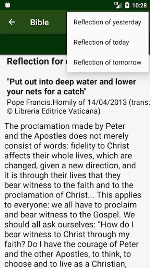 • Daily gospel. Follow the daily lectures, first lecture, psalms and the gospel of the day.