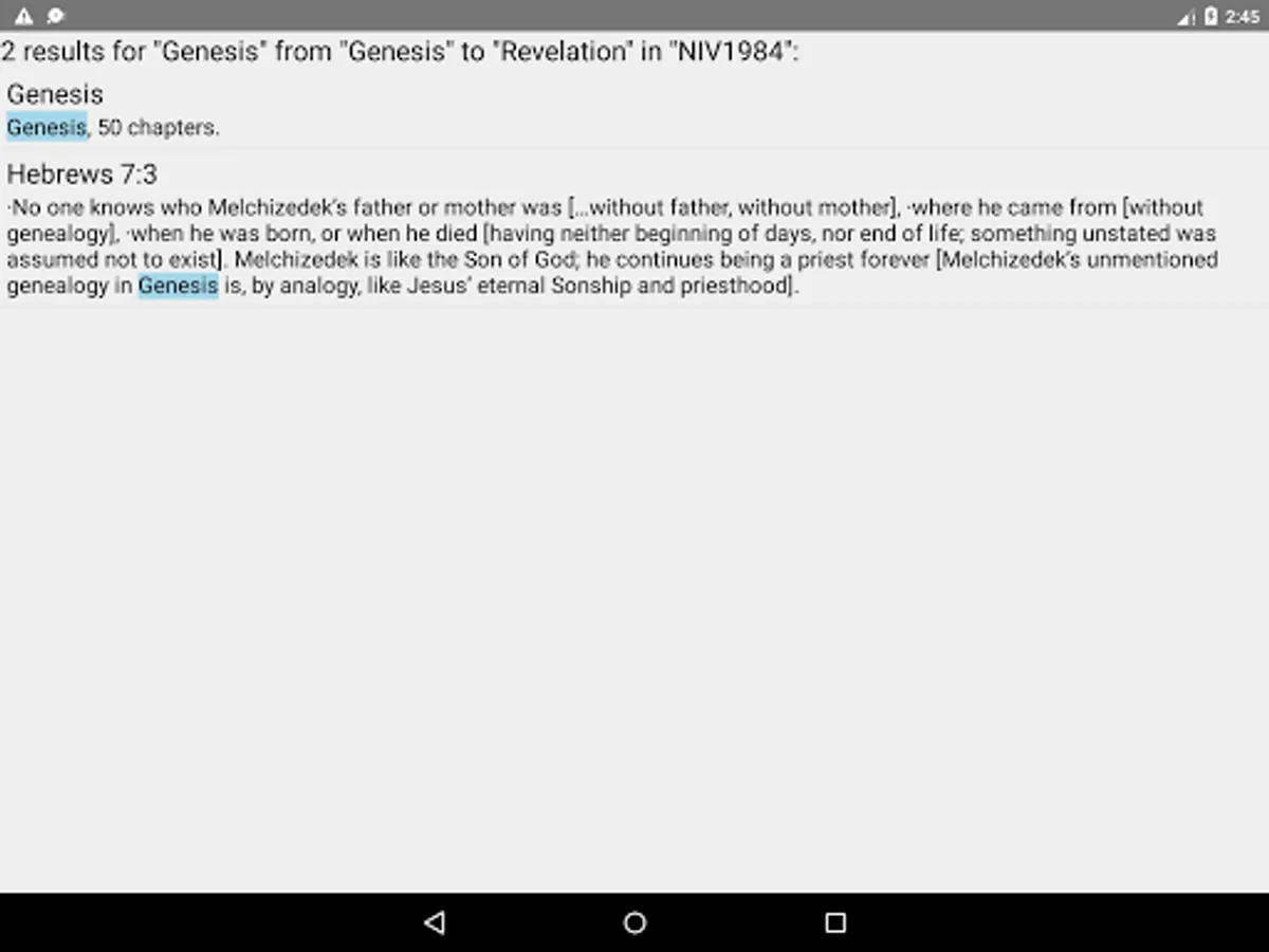 This app has an available search that allows you find the results you are looking for. You may search by a key word . Change books, chapters, verses in a proper way.