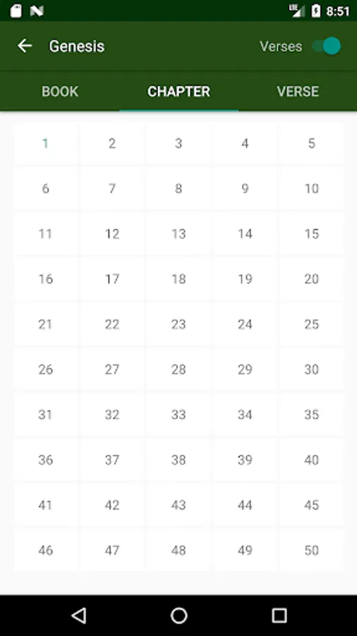5. Quick Access: By just a few taps you can quickly navigate to any book, chapter and verse.