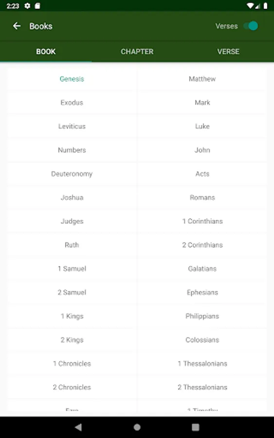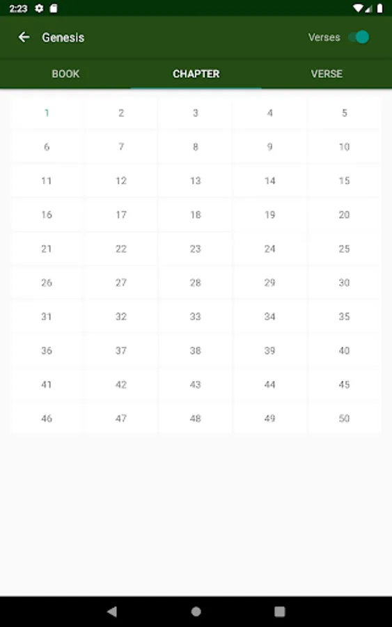 • Activate or deactivate the verse option in order for you to find your chapter the way you prefer