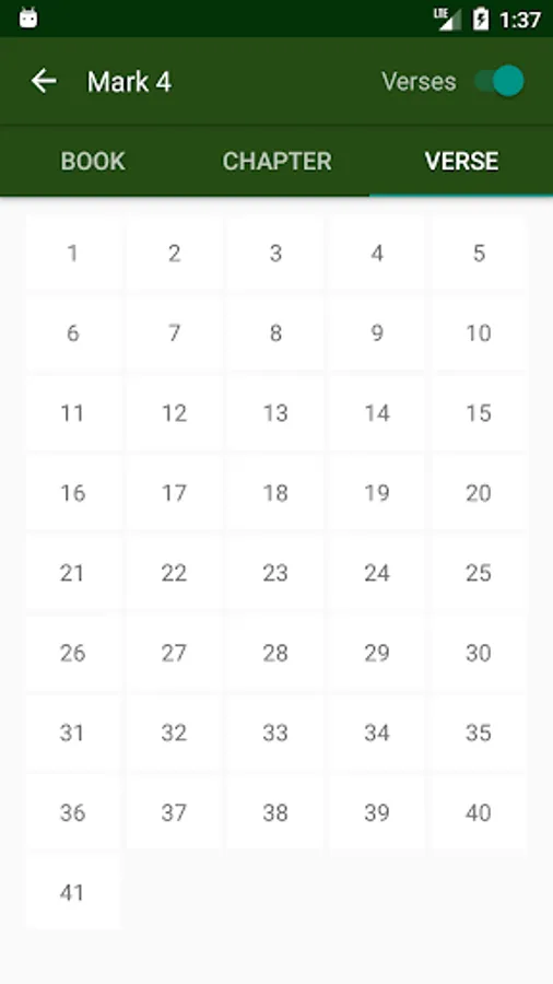 • Activate or deactivate the verse option in order for you to find your chapter the way you prefer