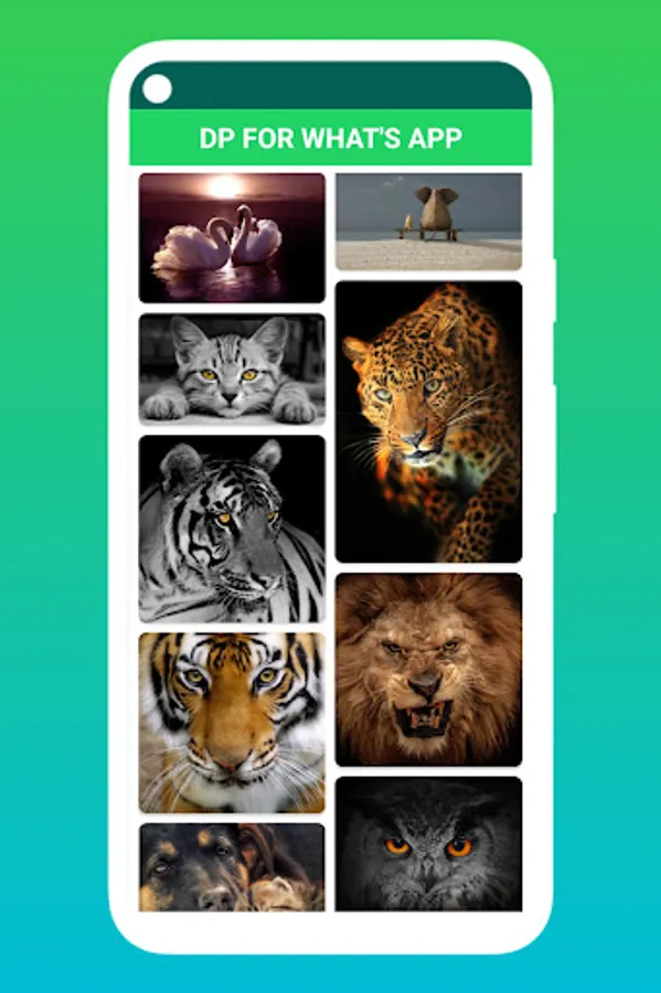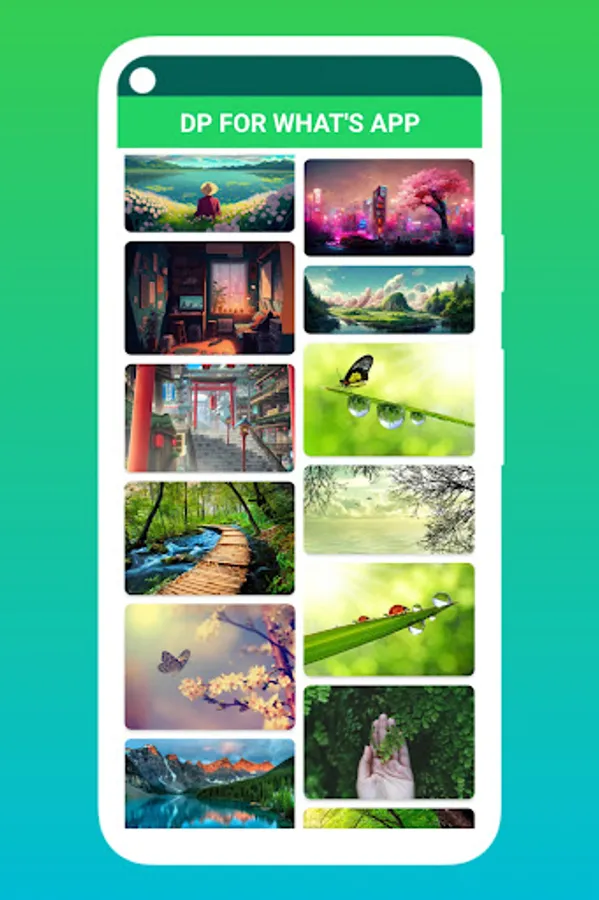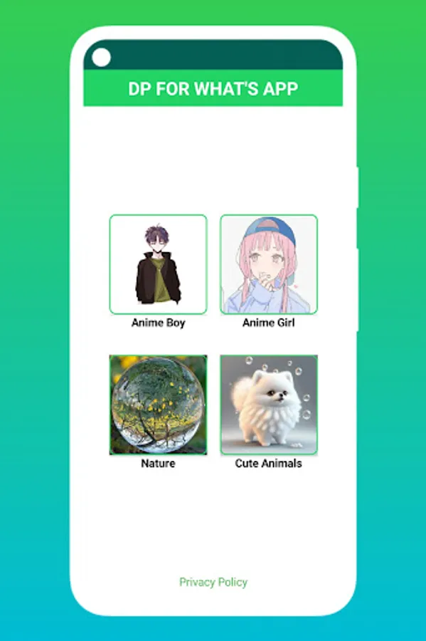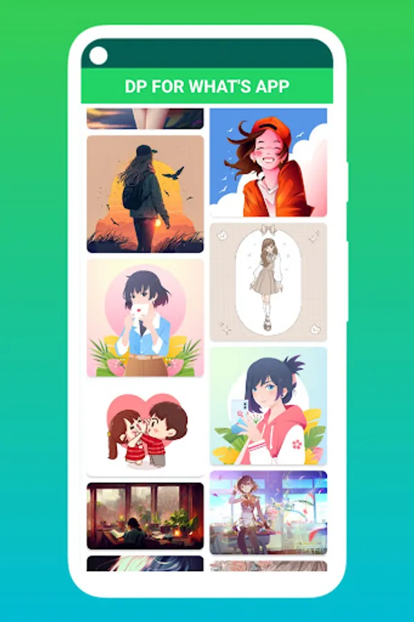 When You Open DP WhatsApp, You'll see categories, Anime profile picture for girls,boys and app has also animal and whatsapp dp images for nature that looks awesome, select any category in Dps For WhatsApp a dp photo app and scroll for that images you want to set on DP whatsapp or any social media profile picture.