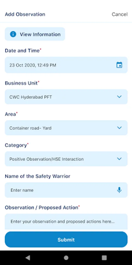 Users can Report Safety Incidents, Hazards, and Near Misses using Custom Forms. Gather all relevant information for an Incident, Hazard, or Near Miss, images with annotation, comments, videos etc. All data is uploaded to the Cloud for Analysis, Management, Corrective Action, Reporting and Submission to the auditors when required.