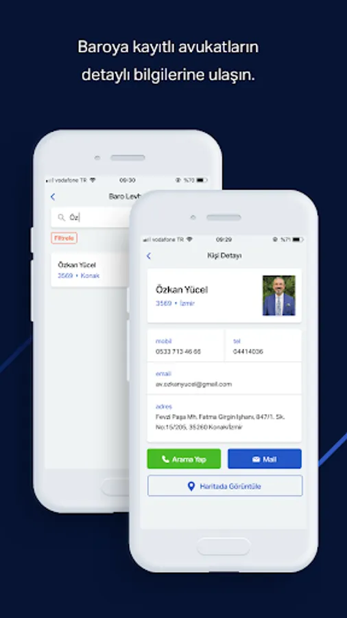 It is a mobile application which is made for lawyers of Izmir Bar Association, where you can access the announcements, news, events and digital publications of the Bar Association, you can establish professional communication from anywhere with telephone book and bar sign, facilitating your work with agenda and useful calculation tools, and saves you from paper load by doing offline legislation scanning.