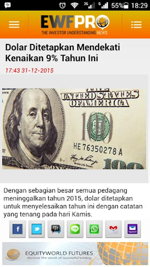 Download aplikasi EWF-PRO gratis untuk mengikuti perkembangan berita ekonomi indonesia maupun berita dunia.