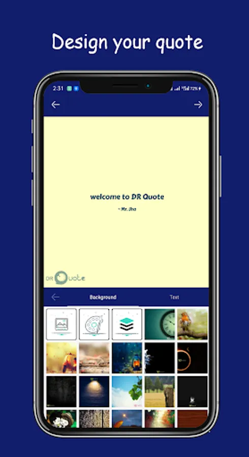 4. WRITE ON PHOTOS: There are many backgrounds by categories provided by DRQuote. DRQuote uploads new backgrounds daily for quotes. Writer also can choose image from gallery for quote background.