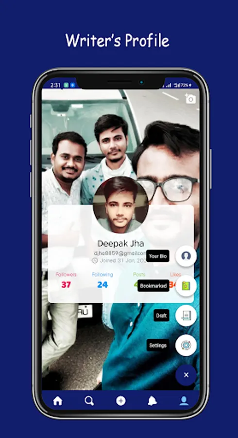 3. FIND WRITERS: Find your favourite writer by name or email.