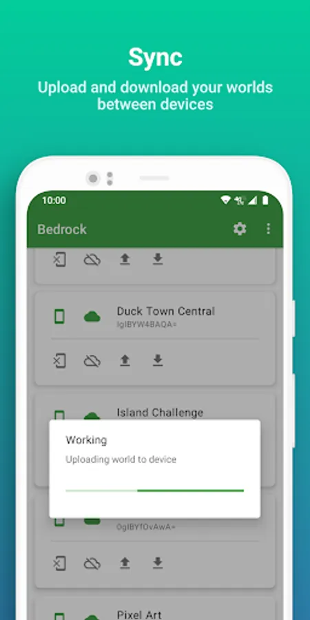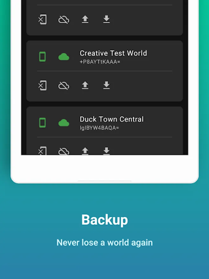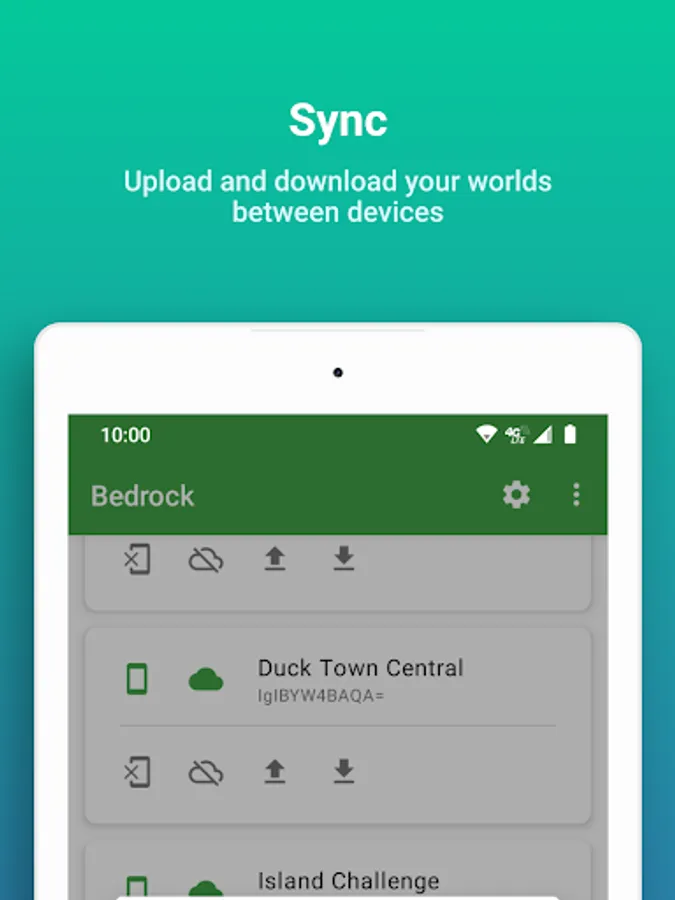 Bedrock makes it possible to upload your Minecraft worlds to Google Drive. After you install Bedrock on your other Android devices, you can download that world from the cloud and pick up where you left off.