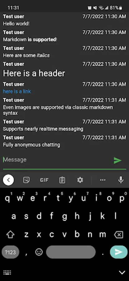 Masque connects to Google Firestore for its database. Users can enter any display name and room id to send messages. No sign up is required. The room id can be treated like a password.