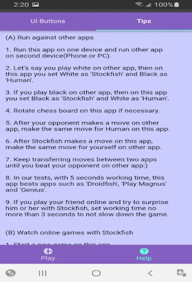 - When play online, you can use 6-8 hints provided by Stockfish at any move.