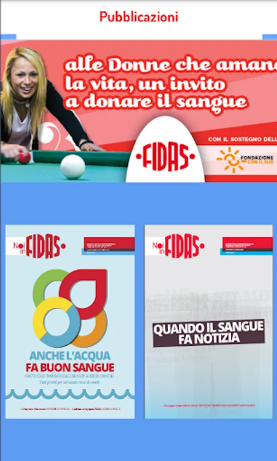 One section is devoted entirely to the publications of the Fidas, to keep in touch with one of the largest national organizations for the donation, and the home will always highlight a content chosen by Fidas for donors.