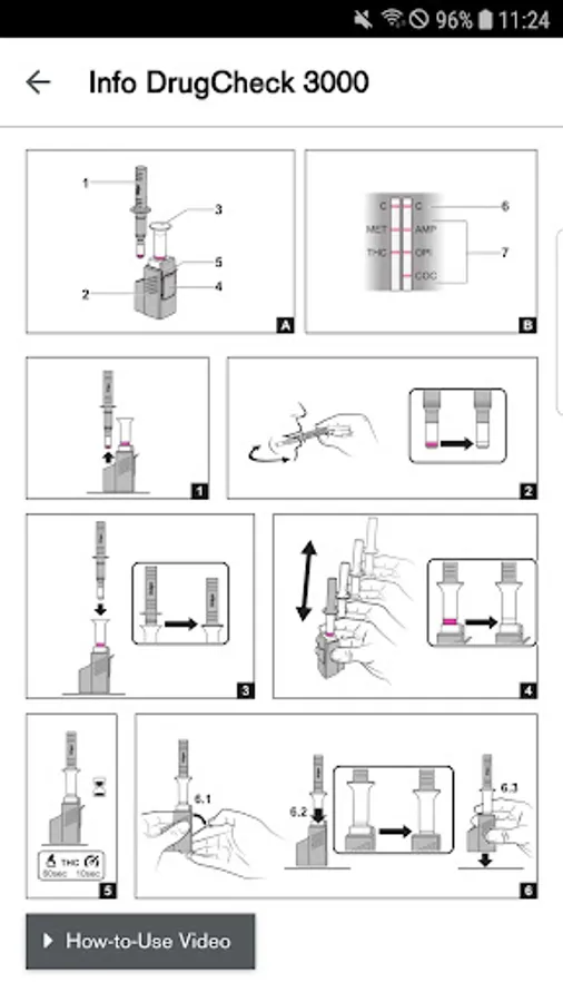 Handy extra functions provide extra certainty: the user can go through the test procedure by watching a step-by-step tutorial video. The test result, which is recorded using the smartphone camera, is clearly explained via a graphic display.