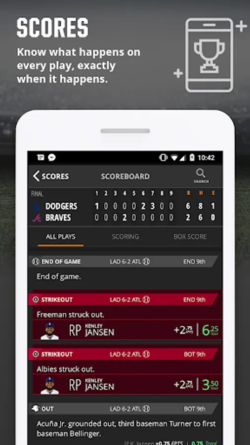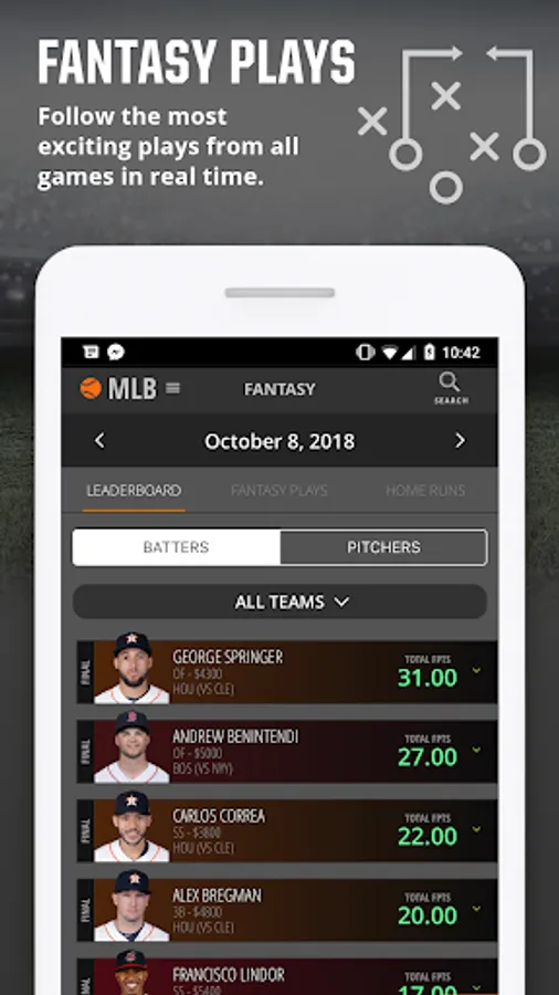Leaderboard – Track every player on a given night and their total fantasy score in real time. Updating live with every play, the leaderboard lets you take a broader view at the action across the league.