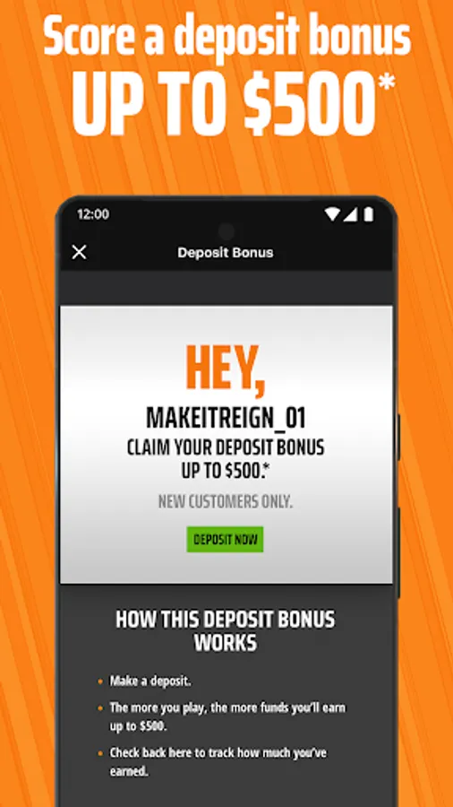 *New Players receive up to $500 in DK Dollars. Bonus amount equal to 20% of deposit. Min. $5 deposit req. $2,500 deposit required for max bonus. Bonus awarded based on the following play-thru requirement: for every $25 played on DraftKings in DFS/Sportsbook/Casino, player receives $1 in DK Dollars. For example, a customer who makes a deposit of $2,500 after opting in will initially receive $0 in DK Dollars. On day 3, if they enter a $25 DFS contest, the customer will have $1,976 in their account ($1,975 in deposited funds, and $1 in DK Dollars based on the $25 DFS entry fee). At the end of the play-thru period, if no other funds are played-thru, the customer will have $1,975 in withdrawable cash and $1 in DK Dollars. Customer must play-thru a cumulative total of $12,500 in any combination of DFS/sportsbook bets (min. -300 odds)/casino games to receive the max. bonus of $500 in DK Dollars ($2,500 * 20% = $500 max bonus; 25x play-thru on $500 is $12,500). Play-thru must be met within 90 days (2160 hours) from the date of first deposit. Players who previously made a deposit on any DK product are ineligible for this promotion. Limit one (1) offer per player. Ends 12/31/2023.