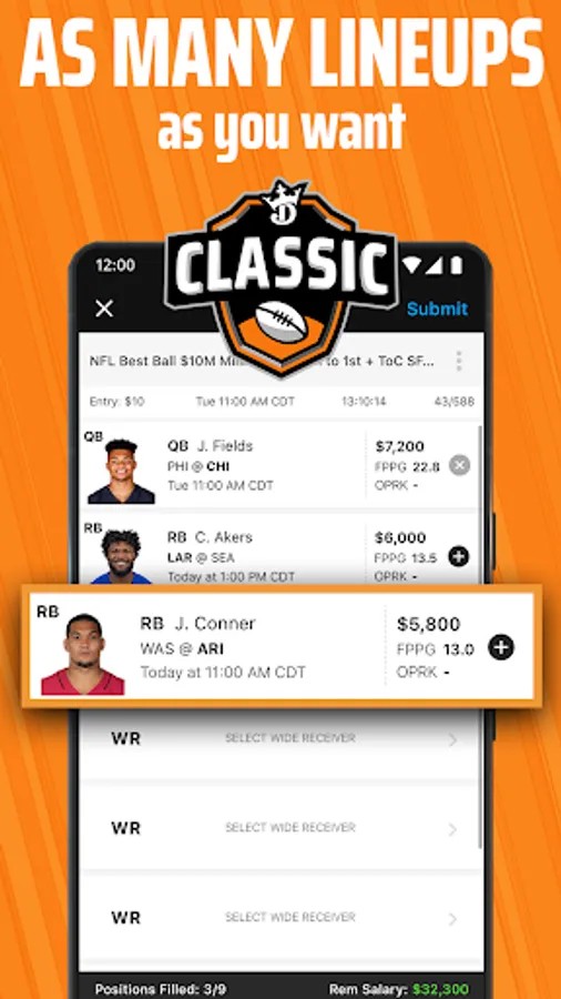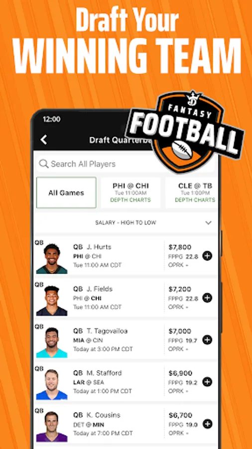 1. Pick your sport and draft a team lineup of your favorite real-life players while staying under the salary cap.