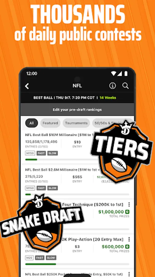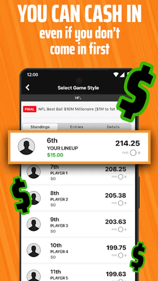 We have a contest for everyone: play for free for a shot at your share of big cash prizes or enter a paid contest for the shot at winning even more money. Choose from all your favorite sports including NFL football, MLB baseball, NBA basketball, NASCAR, PGA golf, MMA & more. Create your own NFL leagues and football lineups – and track your results from NFL football games in your sports league's leaderboards.