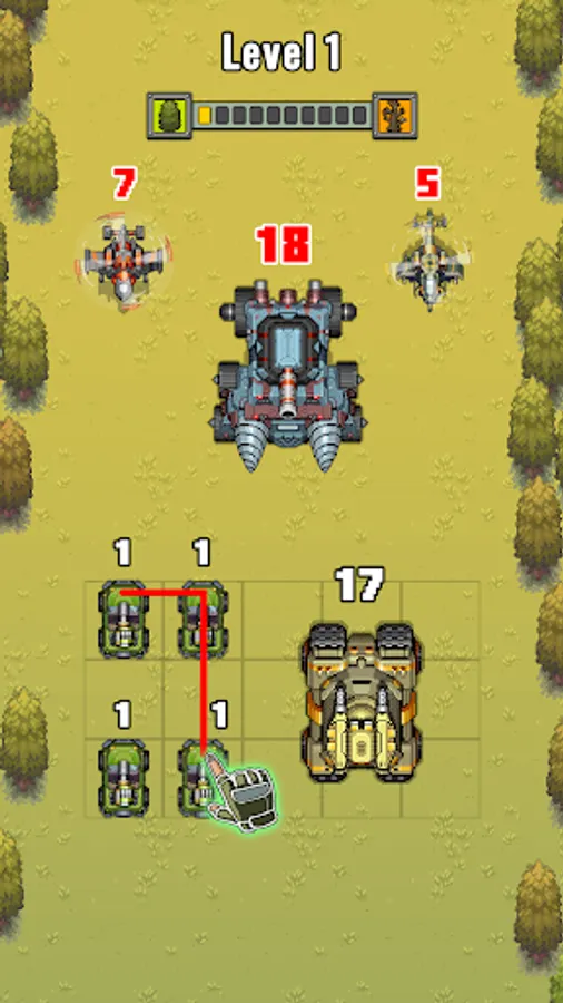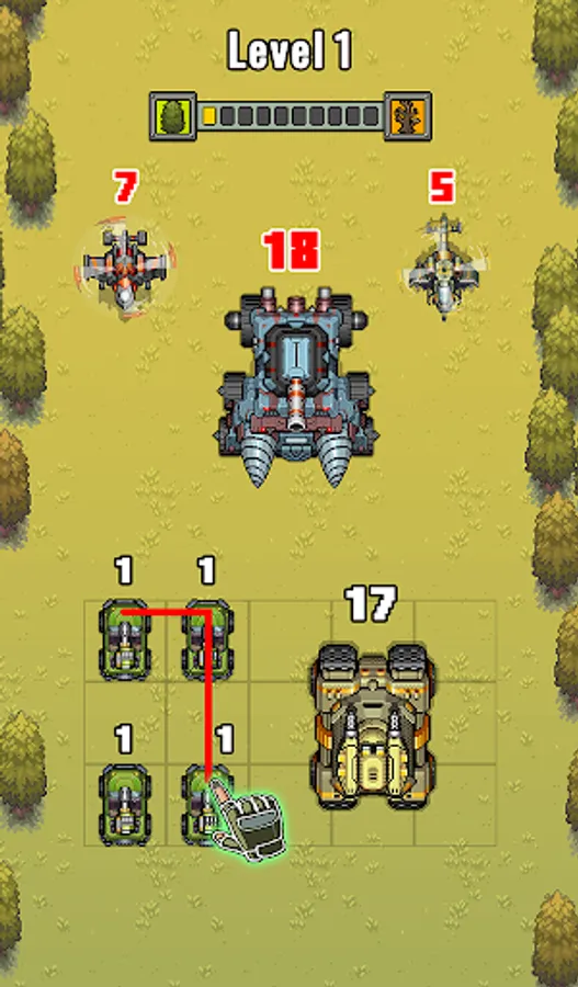 With the same gameplay as the other Merging game such as Dino Merge, Dragon Merge, Superhero Merge, Merge Poke, Merge evolution, Merge Monster, Frog Evolution,...Your quest is simple: Merge the same vehicles and ships to upgrade your army, from simple jackal jeeps, to become more powerful ones like Tanks and many more. Get ready and prepare yourself in the wars of weapons, overpower your enemies and become the strongest!