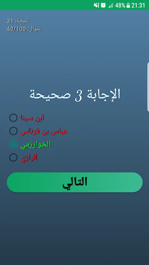 An application rich in information in various fields (science, sports, politics, history, religion, art, medicine, puzzles, capitals,,,) and what distinguishes it from others is its ease of use and the diversity of its information, it works on many devices and fits all types of phones, It is suitable for all ages, with questions for adults and questions for children