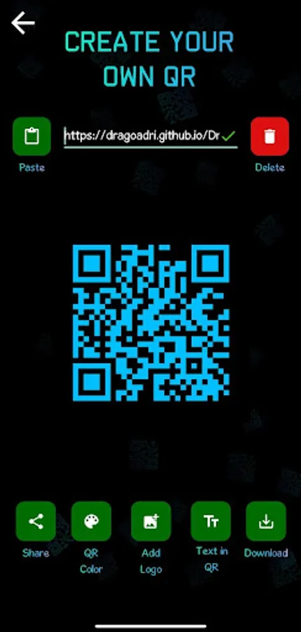 Read and create your own QR codes! You may need the url atached to a QR code or maybe just create a QR code from an url , create it with this app, change its color , add icons, text download it and share it!