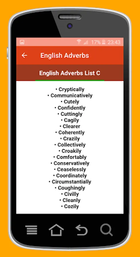 English Adverbs List is wonderful app to learn english adverbs is very easy to learn all adverbs in english language and grammar from A to Z