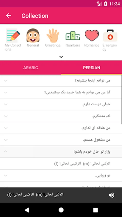 The free غير متصل على الانترنت الفارسية العربية قاموس & مترجم application. Internet connection is not required! If you want to learn Persian or Arabic the most effective way, there's no better choice than Dragoma! Dragoma shows the definition/meaning of Persian or Arabic words as pop up without opening dictionary app ever. No hassle of switching between apps. You can look up word definitions while reading PDFs/e-books while browsing the internet and even while playing games. Just copy the word, Dragoma dictionary will show you the meaning/translation.
