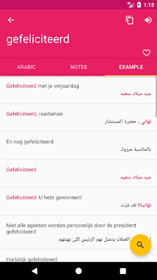 ♦ Search option is working on both Dutch - Arabic and Arabic - Dutch directions.