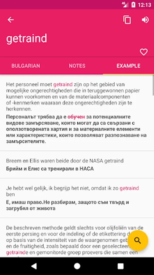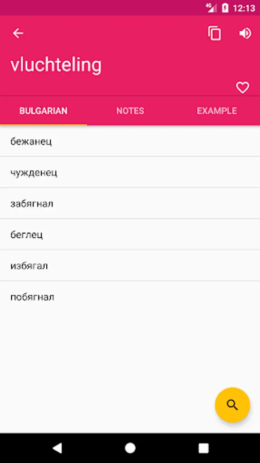 ♦ Search option is working on both Dutch - Bulgarian and Bulgarian - Dutch directions.