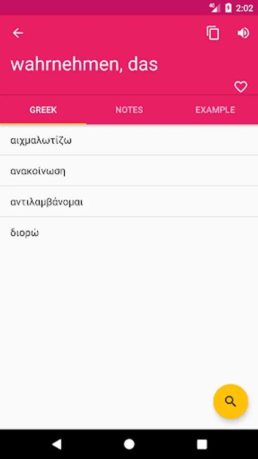 ♦ Search option is working on both Greek - German and German - Greek directions.