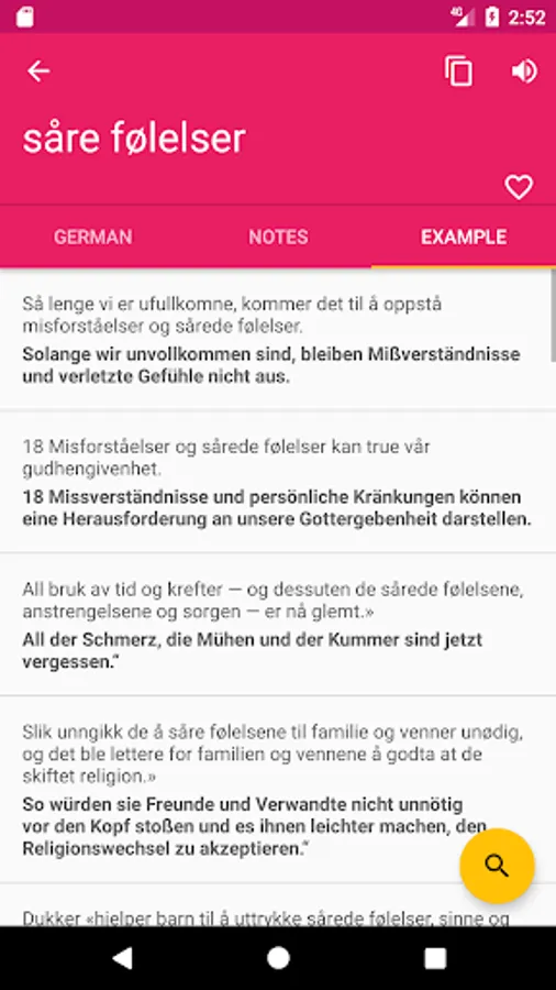 ♦ Search option is working on both Norwegian - German and German - Norwegian directions.