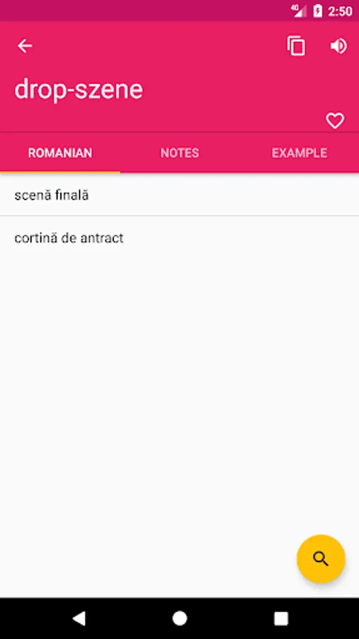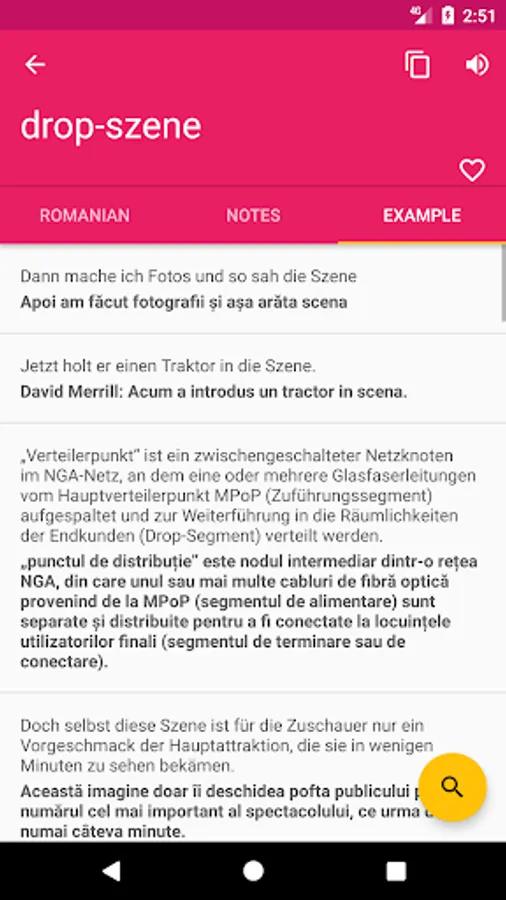 ♦ Search option is working on both Romanian - German and German - Romanian directions.