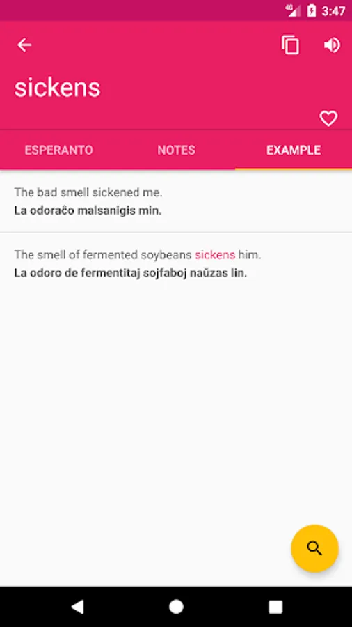♦ Search option is working on both Esperanto - English and English - Esperanto directions.