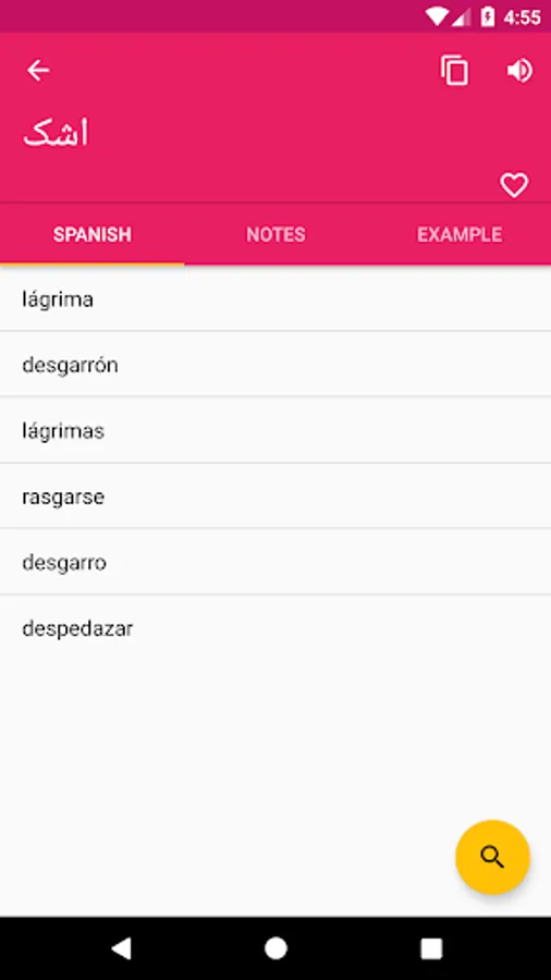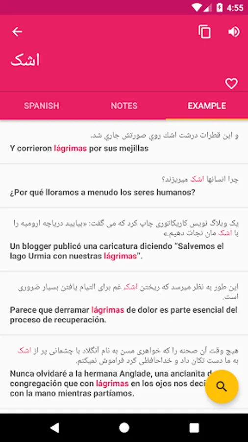 ♦ Search option is working on both Spanish - Persian and Persian - Spanish directions.
