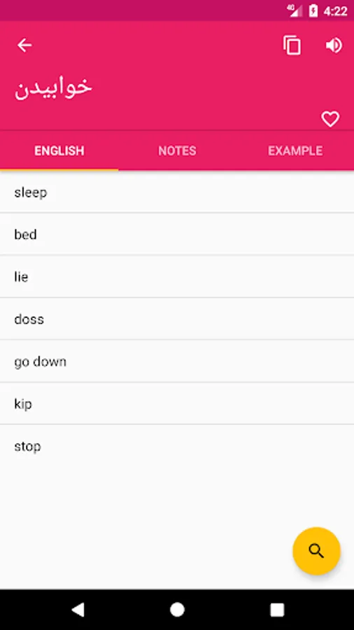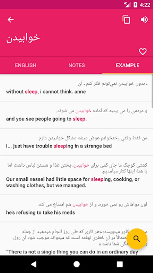 ♦ Search option is working on both Persian - English and English - Persian directions.