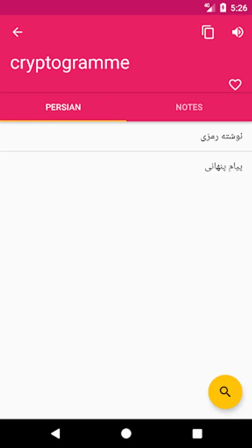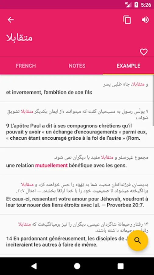 ♦ Search option is working on both Persian - French and French - Persian directions.