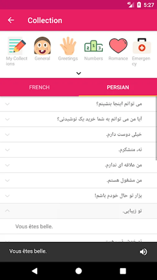 The free hors ligne Persan Français Dictionnaire & Traducteur application. Internet connection is not required! If you want to learn Persian or French the most effective way, there's no better choice than Dragoma! Dragoma shows the definition/meaning of Persian or French words as pop up without opening dictionary app ever. No hassle of switching between apps. You can look up word definitions while reading PDFs/e-books while browsing the internet and even while playing games. Just copy the word, Dragoma dictionary will show you the meaning/translation.