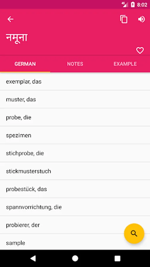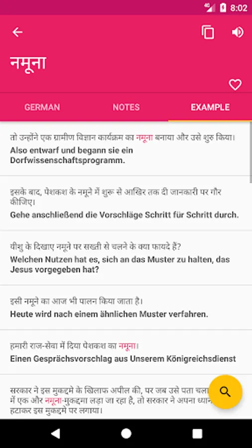 ♦ Search option is working on both German - Hindi and Hindi - German directions.