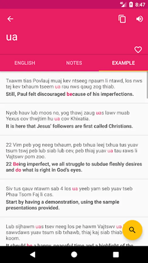 ♦ Search option is working on both Hmong - English and English - Hmong directions.