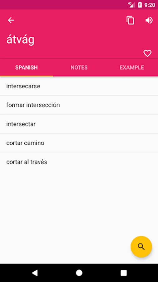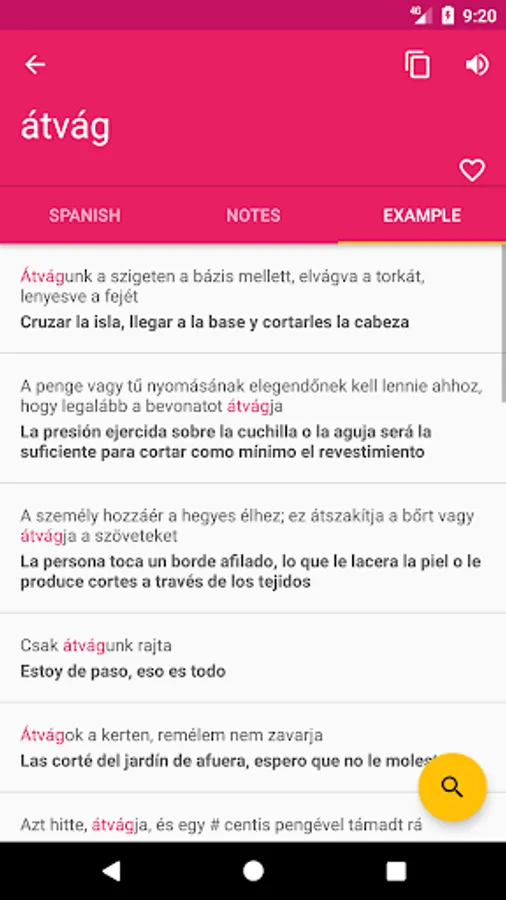 ♦ Search option is working on both Spanish - Hungarian and Hungarian - Spanish directions.