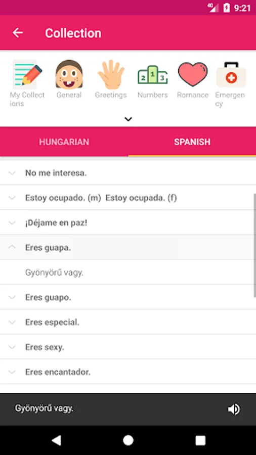 The free nem elérhető spanyol magyar Szótár & Fordító application. Internet connection is not required! If you want to learn Spanish or Hungarian the most effective way, there's no better choice than Dragoma! Dragoma shows the definition/meaning of Spanish or Hungarian words as pop up without opening dictionary app ever. No hassle of switching between apps. You can look up word definitions while reading PDFs/e-books while browsing the internet and even while playing games. Just copy the word, Dragoma dictionary will show you the meaning/translation.
