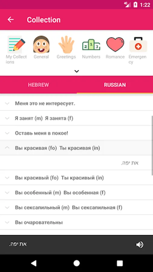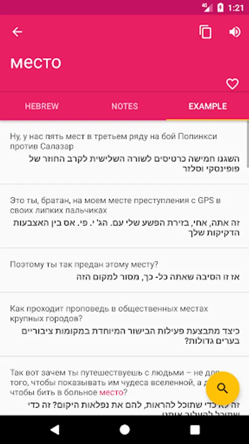 ♦ Search option is working on both Russian - Hebrew and Hebrew - Russian directions.