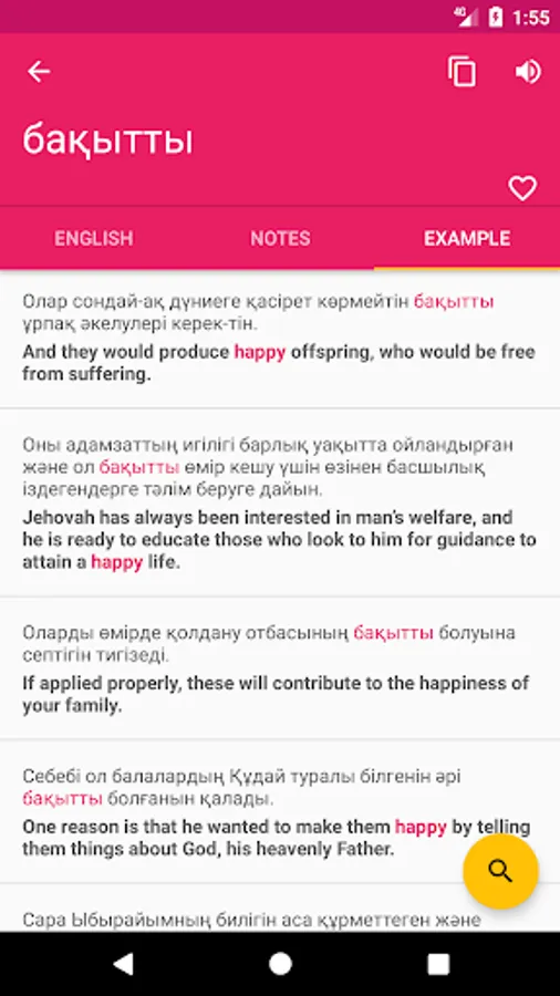 ♦ Search option is working on both Kazakh - English and English - Kazakh directions.