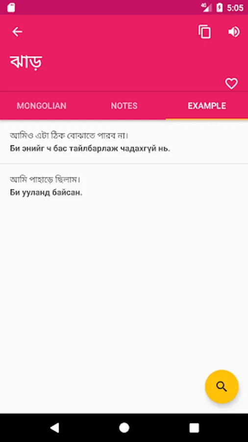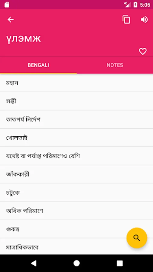 ♦ Search option is working on both Bengali - Mongolian and Mongolian - Bengali directions.