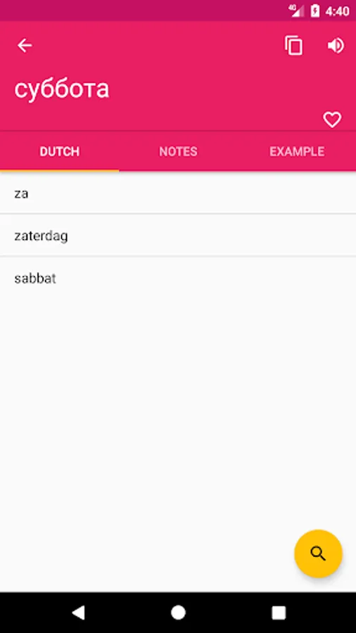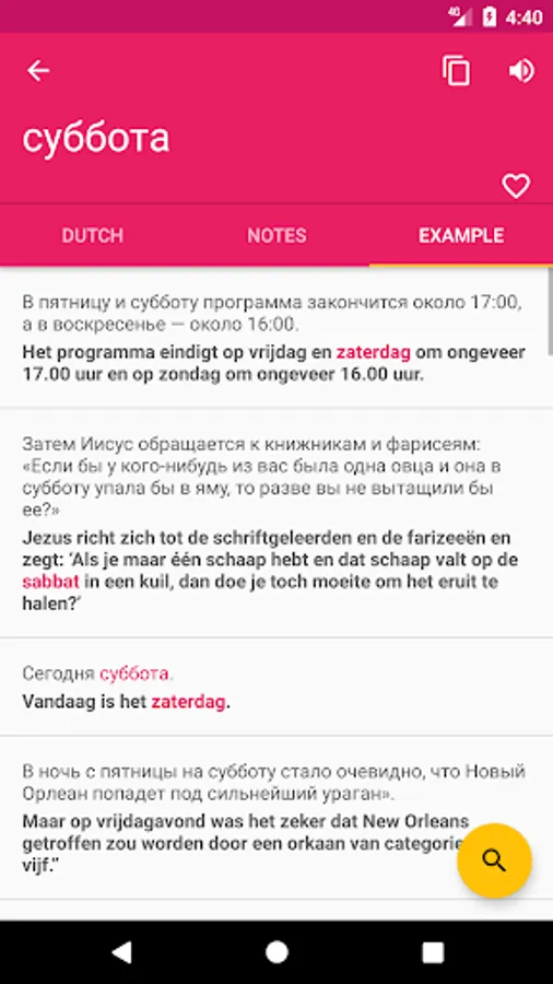 ♦ Search option is working on both Russian - Dutch and Dutch - Russian directions.