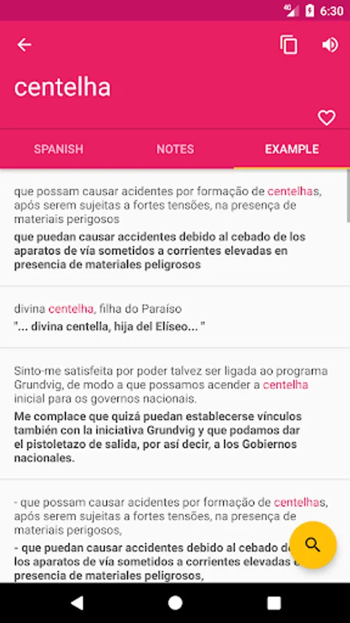 ♦ Search option is working on both Spanish - Portuguese and Portuguese - Spanish directions.
