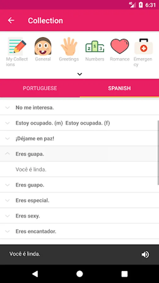 The free desligada Espanhol Português Dicionário & Tradutor application. Internet connection is not required! If you want to learn Spanish or Portuguese the most effective way, there's no better choice than Dragoma! Dragoma shows the definition/meaning of Spanish or Portuguese words as pop up without opening dictionary app ever. No hassle of switching between apps. You can look up word definitions while reading PDFs/e-books while browsing the internet and even while playing games. Just copy the word, Dragoma dictionary will show you the meaning/translation.