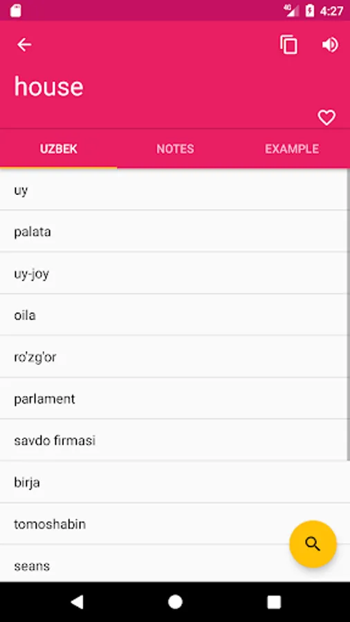 ♦ Search option is working on both Uzbek - English and English - Uzbek directions.